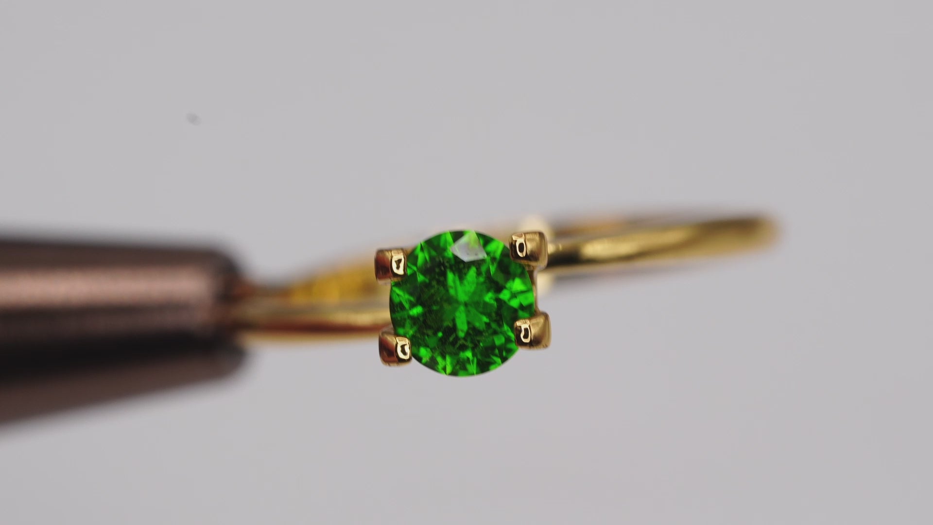 A vivid Chrome Diopside in a classic Standard Round Brilliant cut.