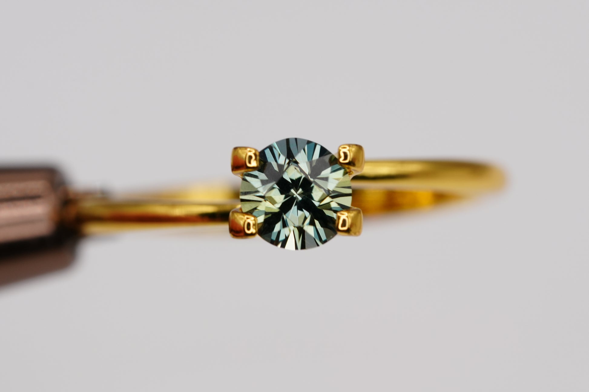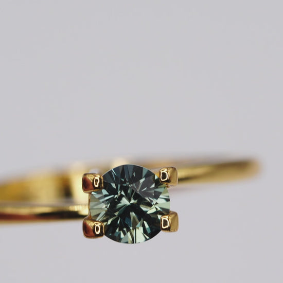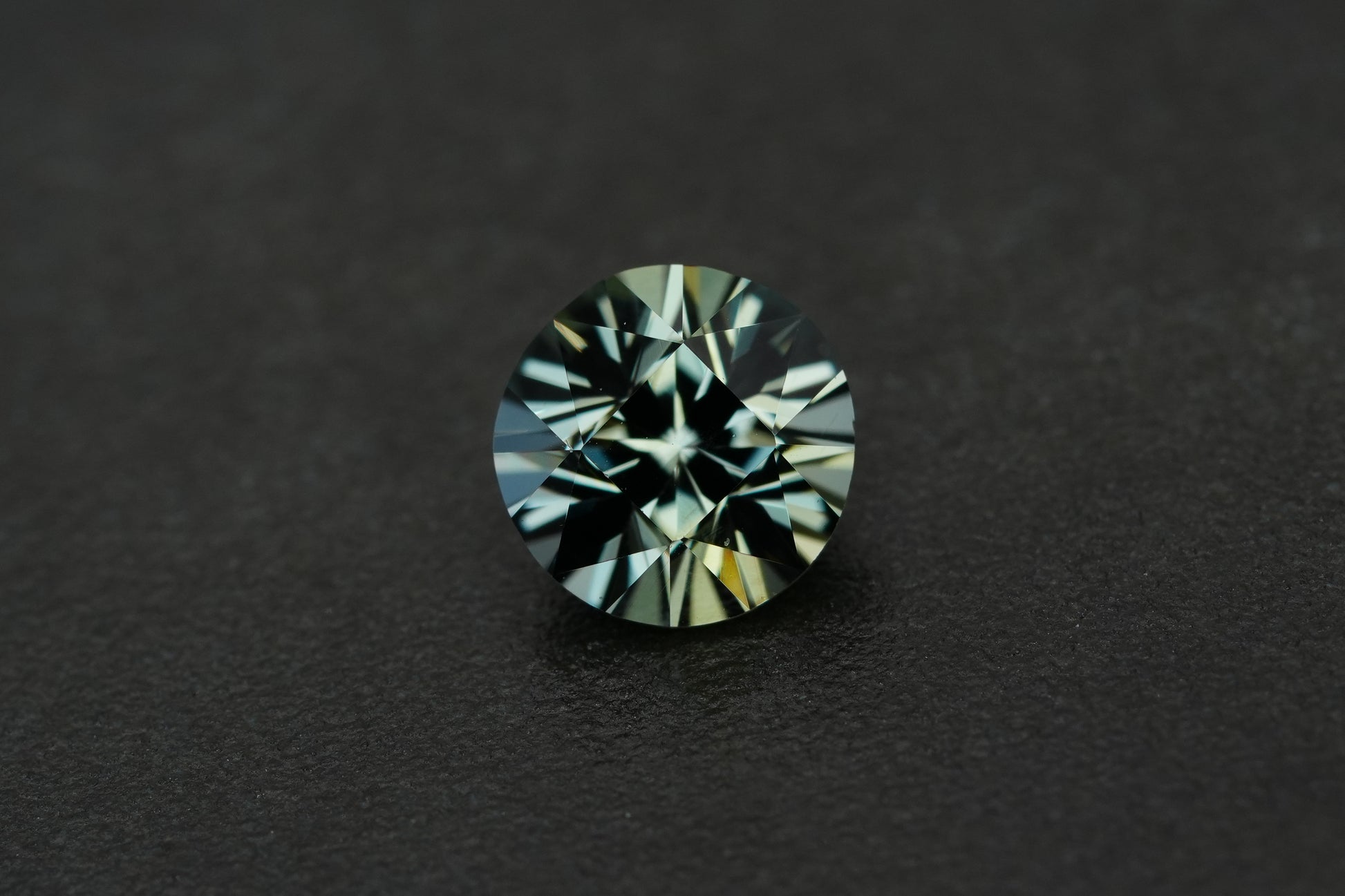 A natural unheated Songea Sapphire cut in a custom round style. This sapphire shows a deep dark green blue tone with strong saturation and a very moody elegant look.