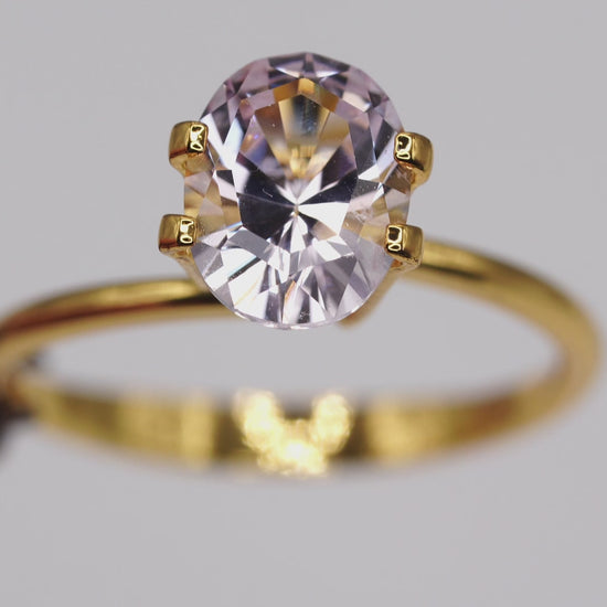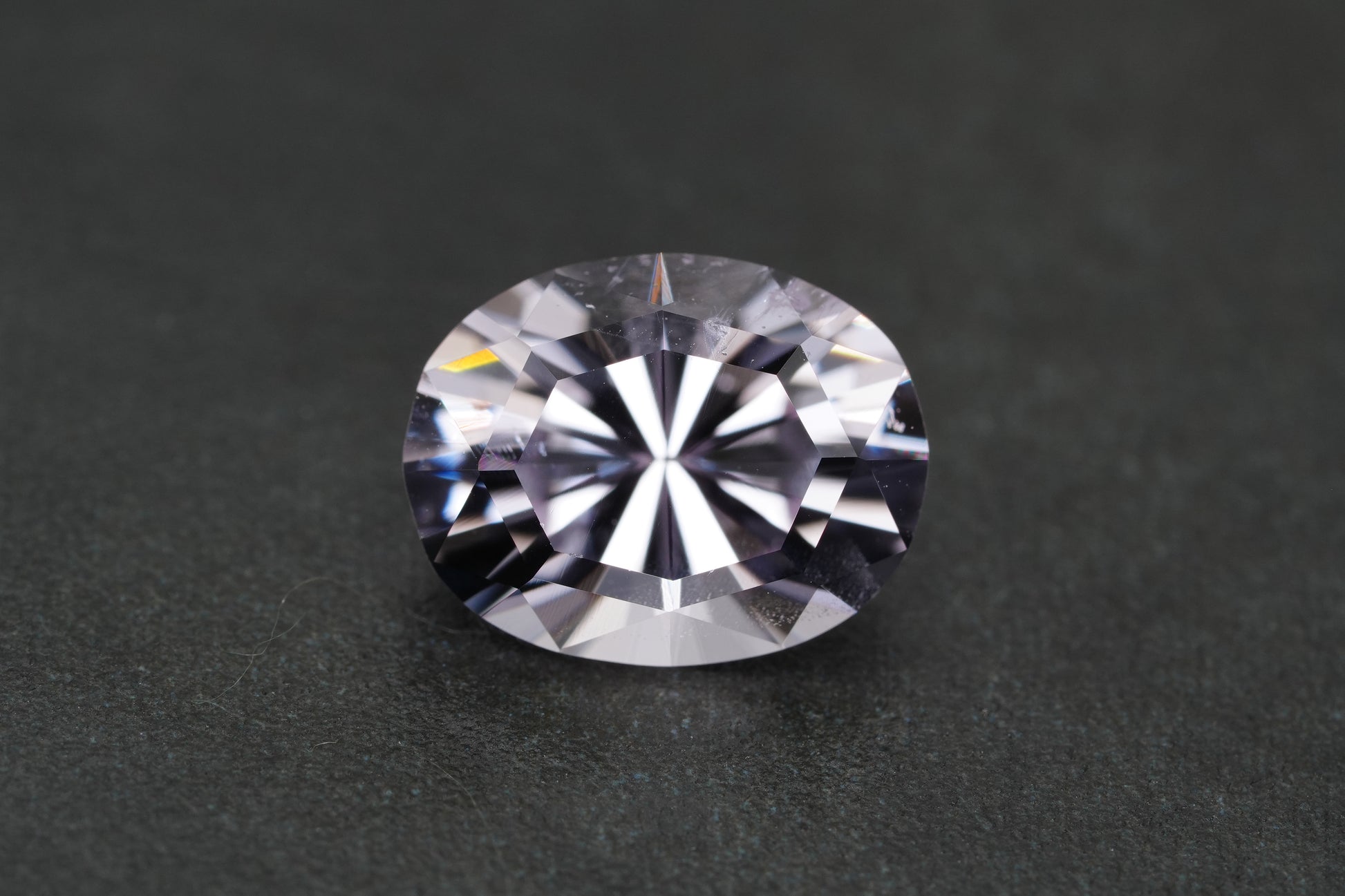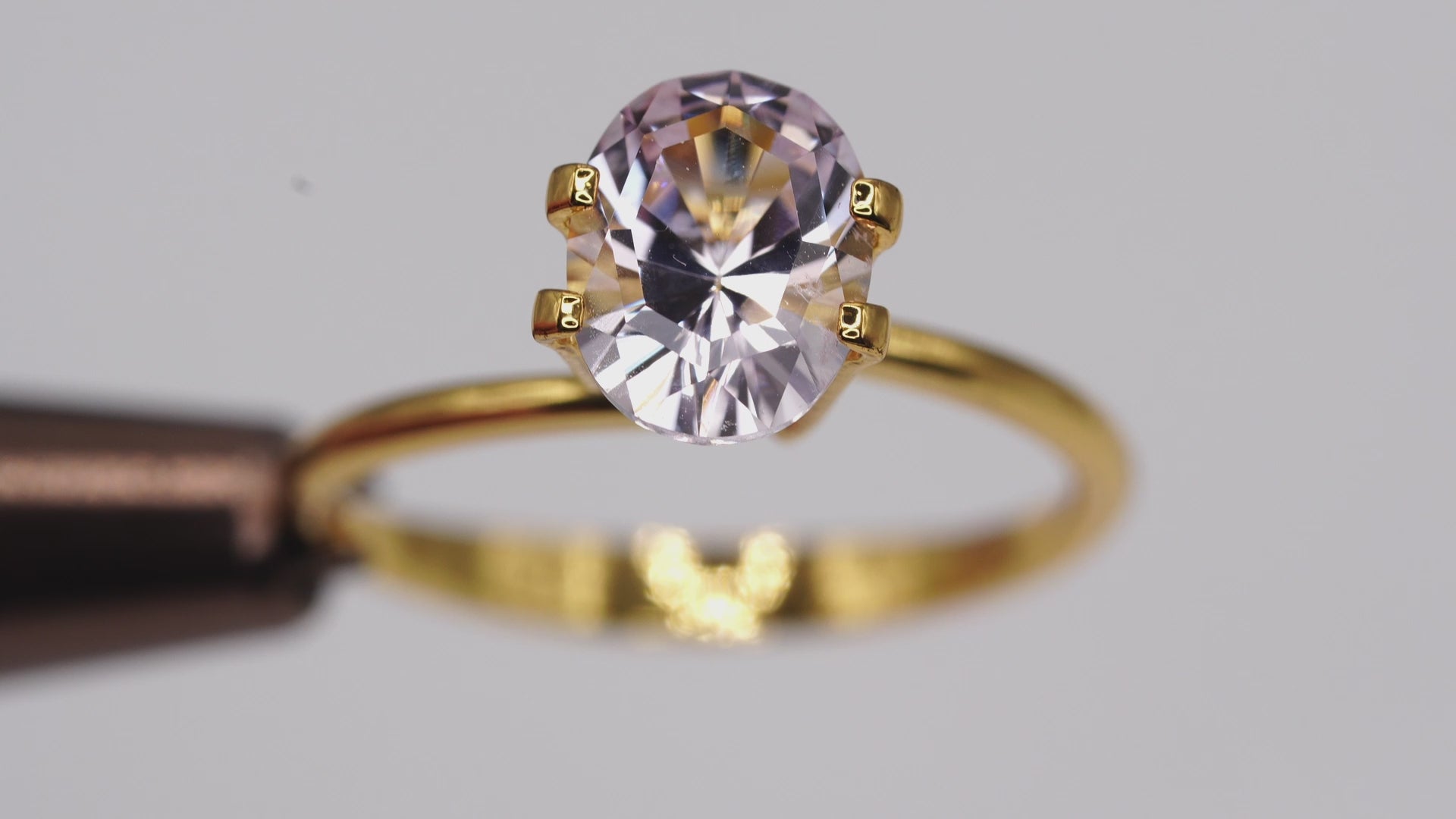 A natural Morganite from Nigeria cut in a custom oval style. This stone shows a light pastel pink color with bright internal reflections.