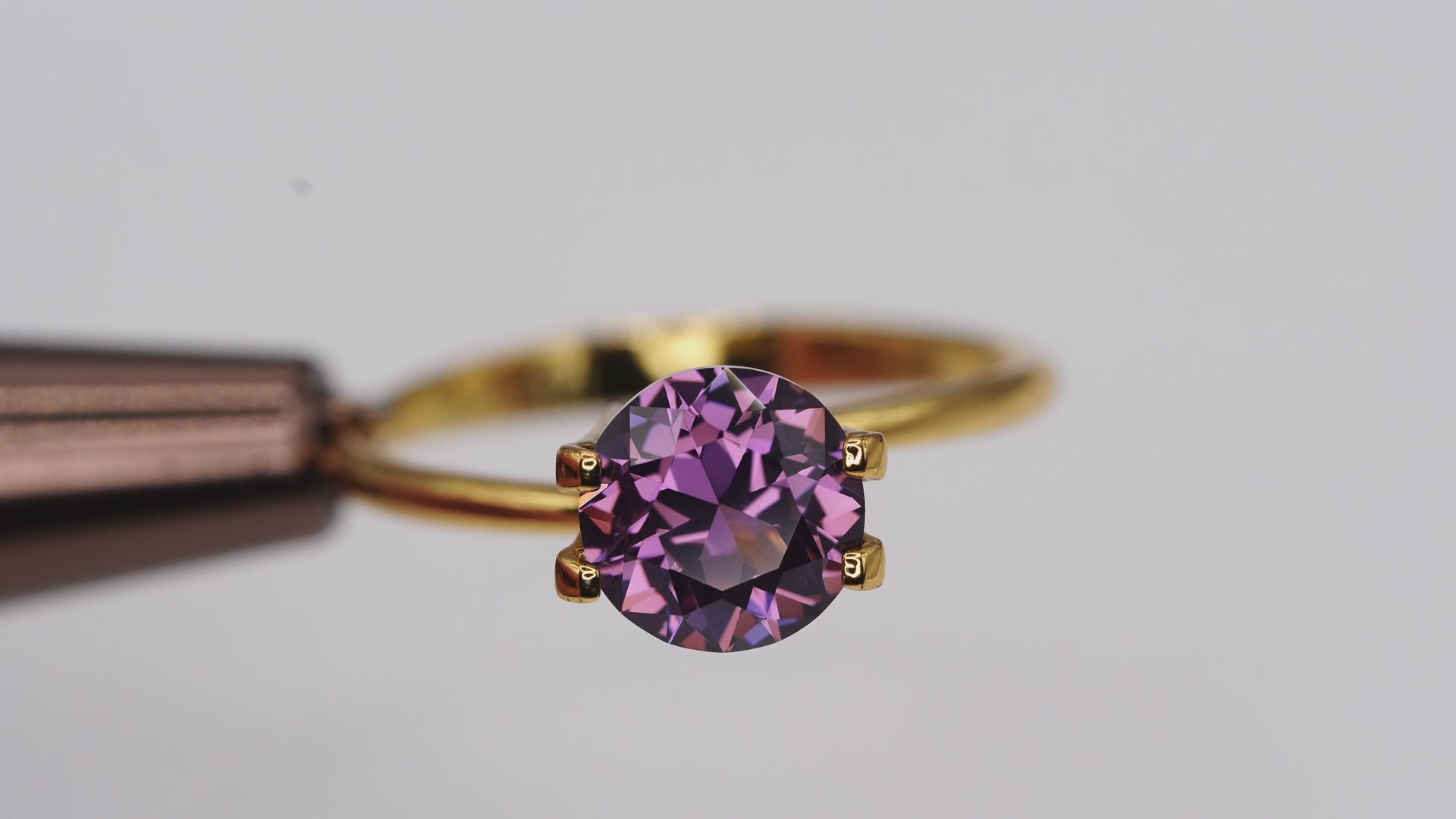 A natural Tanzanian Spinel in a Standard Round Brilliant cut. This gemstone has a deep purple color with a rich, saturated tone and strong internal brightness. Spinel is durable for everyday wear and is highly sought after as a collector gemstone.
